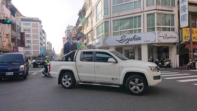臺南市長黃偉哲公投宣傳車隊遊行,最終站抵東區青年路與勝利路口。(程炳璋攝)