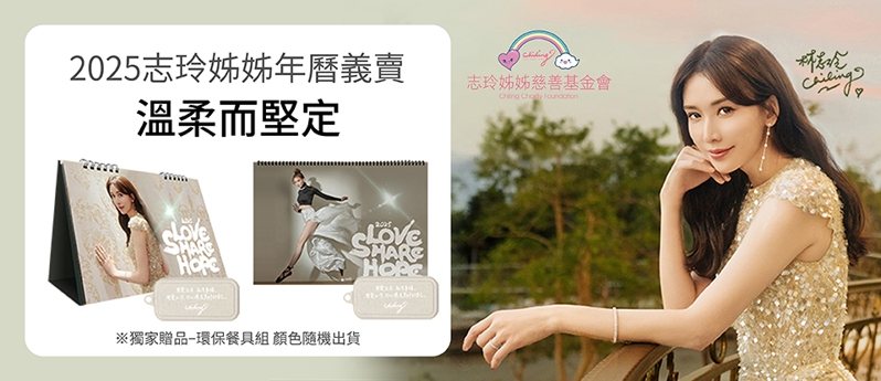 momo購物網將於8月30日上午11點起正式開放預購兩款「2025志玲姊姊慈善年曆」,桌曆愛心價520元、掛曆愛心價580元,透過momo購物網進行預購即可獲得「用愛生活.摺疊環保餐具組」。義賣所得扣除印刷及寄送費用,將全數使用於志玲姊姊基金會推廣兒少心理健康課程、支持弱勢兒童教育與醫療經費、倡導女性身心健康議題,以及扶助重大災害等項目。