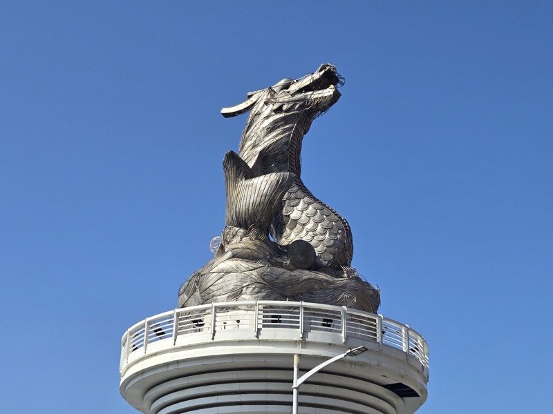 由中央主辦的臺北燈會(後來改稱臺灣燈會)2001年移師高雄辦,以神話動物鰲魚造型打造主燈,外表「龍頭魚身」原地保留迄今,夜間維持燈光亮起狀態;近期有網友提醒這隻已24歲,許多人又討論說「它真的不像蛇,像一條魚!」、「那隻明明就是暴鯉龍」。
