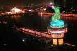 高雄愛河畔的蛇年主燈「鰲躍龍翔」,以神話動物鰲魚爲造型,24年前設置迄今已成指標景觀。記者王勇超/攝影