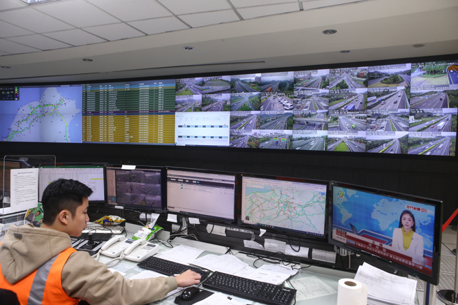 農曆春節屆,交通部公路局北區養護工程分局交控中心預估7天連假會有4波車潮,國道、省道易壅塞路段,用路人可改走替代路線,出門前記得先透過高公局路況專線1968及APP等方式查詢,或是改搭大衆運輸,可享國道客運票價及轉乘優惠。圖爲高速公路局北區交控中心作業情形。(鄧博仁攝)