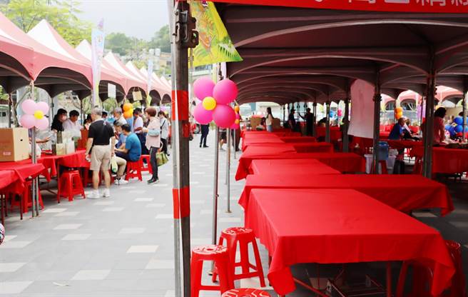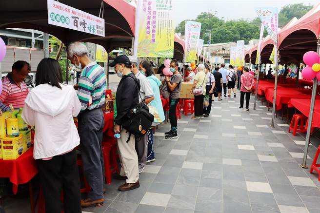 雖出攤比例低,仍有不少民衆一早就到現場買茶,有設攤的攤位買氣顯得強強滾。(呂妍庭攝)