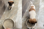 照片中可見,大熊全身毛色由黑→黃,讓人不敢相信前後是同一只狗,唯一沒變的是牠的眼神同樣空靈,鼻子上的「三角白毛」也還是存在。飼主魏小姐表示,大熊從2個月大時就開始改變毛色,背部的黑毛很像穿上了泳衣,「很會掉毛一段時間後,就變成現在這樣三色漸層,家人、朋友一段時間看到,都會說牠變大、變帥!」