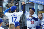 ▼紅人二刀流救援投手羅倫佐首度站上外野守備(圖/達志影像/美聯社)