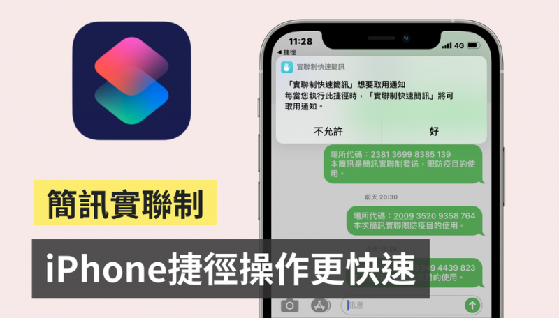 這份腳本可以讓你在掃描店家的 QR Code 後,立即發送簡訊給 1922 以登記實聯制,以上動作完成後還會傳送通知給你,因此在執行前,要先允許捷徑取用手機中的相機、訊息和通知唷