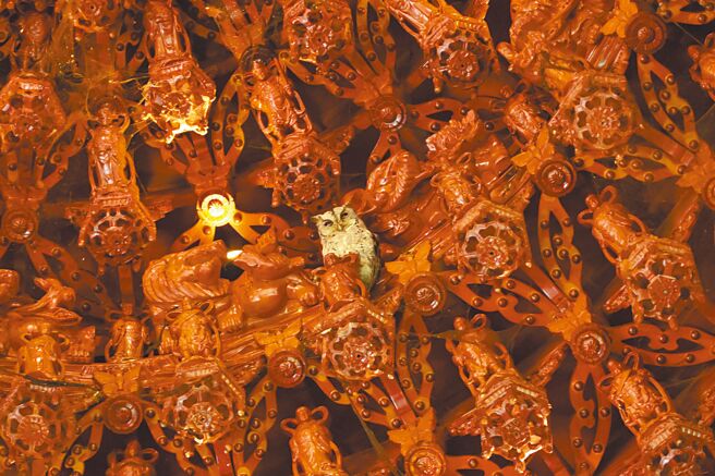 一隻領角鴞駐足停留在嘉義縣竹崎鄉復金真武廟藻井中長達4個多月。(竹崎鄉公所提供/呂妍庭嘉義傳真)
