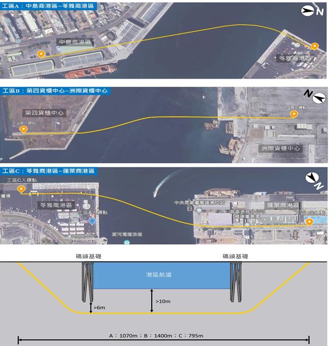 爲達成目標,港務公司規畫以海底潛鑽工法,佈設專用管道以解決跨港區間光纖線路銜接問題,專用管道將穿越航道底部下方10公尺處,最深處將達地面下38公尺,除避免光纖纜線遭受到船舶及海流影響,也可避免傳統使用岸上或市區道路埋設導致距離過長及未來可能挖損等問題,提供更安全穩定的光纖線路。