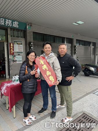 ▲職棒聯盟會長蔡其昌署名臺灣尚勇春聯,一出來就造成轟動供不應求,臺南市議員李啓維27日親自在服務處發放,順便向大家恭喜新年快樂,現場反應熱烈。(圖/記者林東良翻攝)