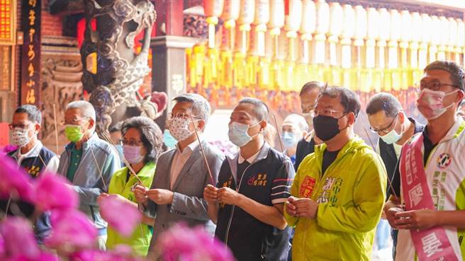 蔡其昌昨日甫獲民進黨徵召參選臺中市長,今天就到大雅幫子弟兵市議員參選人林義偉輔選,隨後並前往豐原慈濟宮向媽祖參香祈福。