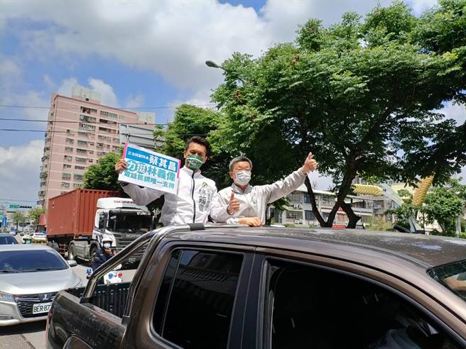 立法院副院長蔡其昌25日陪同市議員參選人林義偉車隊掃街。(陳淑娥攝)