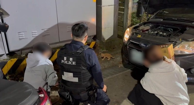 臺中市豐原區有熱心民衆發現,停在路邊轎車傳出怪聲,懷疑有流浪貓受困,報警求助。圖/警方提供