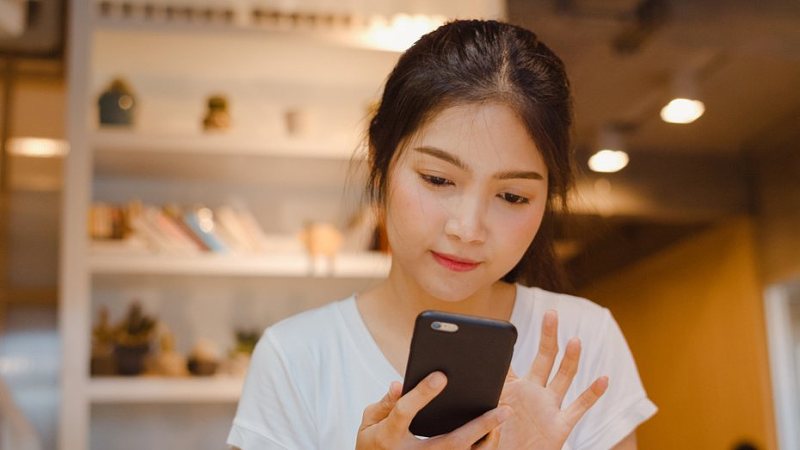 一位店員在網上抱怨,自己總會在幫客人結帳時,無意間看到手機上令人害羞的畫面。情境示意圖/Ingimage