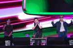 玖壹壹17日高雄巨蛋開唱,Ella陳嘉樺出題考倒三人,原被要求「三男接吻」,三人趕緊一一獻吻Ella。(混血兒娛樂提供)