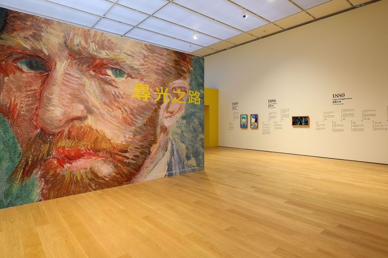 第一展區「啓蒙之光」,展示了1880至1885年間梵谷受傳統學院技法與古典大師影響的作品,以沉鬱的中性色調描繪農村的樸實生活,如〈努南的舊塔樓〉等畫作。第二展區「自然之光」揭示了梵谷1886至1888年在巴黎吸收現代藝術流派後的創作,色彩與技法的轉變在〈自畫像〉等作品中展現無遺。第三展區「心靈之光」聚焦於梵谷1889至1890年在南法時期的創作,以短筆觸和強烈情感勾勒出如〈盛開的慄樹〉般的動態光影,展現梵谷對生命的堅毅熱情。
