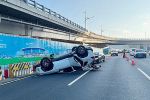 這起翻車意外於下午1時許,藉由吊車吊掛,才順利將車輛翻回正面,隨後由拖吊車吊離現場,並交由清潔人員協助清理地上油漬,隨後才恢復B3機坪的使用。