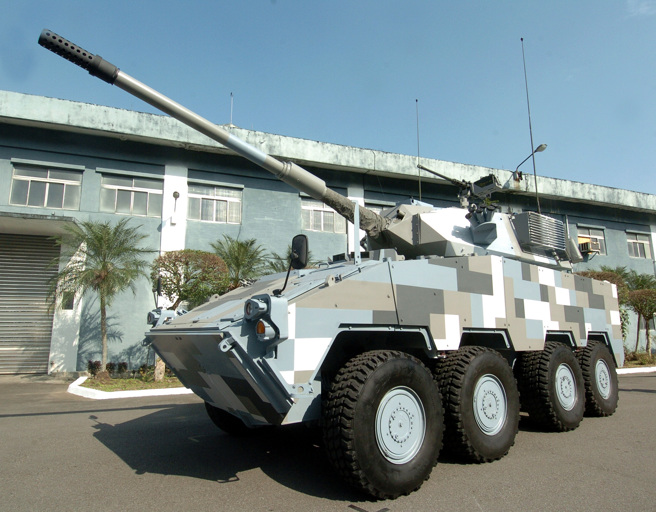 由軍備局研製的「105公釐輪型戰車」案,規劃於今(2024)年量產。圖爲過去軍備局展示的105公釐輪型戰車樣車。(中時資料照,王英豪攝)