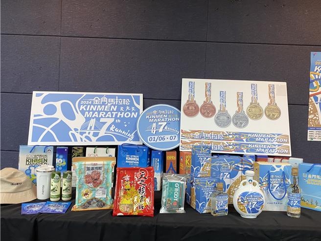 每屆「金門馬拉松」均提供豐富獎品讓選手們帶回留念,明起至6日13:00-20:00間將開放本屆選手領取參賽物資。(圖/金門縣政府提供)