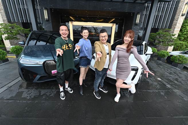 《地球黃金線》與網路節目「威廉沈歡樂送」合作,小鐘(左起)、蘇宗怡、沈玉琳、Yuri陳怡叡一起體驗電動車放鬆之旅。(TVBS提供)