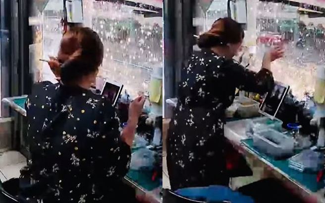 新北市樹林區有家檳榔攤,一位檳榔西施在包檳榔時,外頭突傳出爆炸巨響,下秒就見「火花四散」瞬間嚇壞檳榔西施。(圖/翻攝自臉書爆廢1公社)