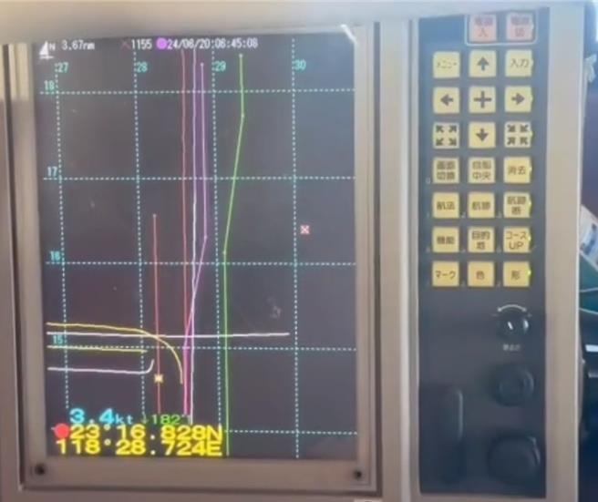 而依據發現漁民的船上螢幕顯示,拍攝時間是6月20日上午6時45分,經緯度是北緯23度16分、東經118度28分,距離七美燈塔63.5海浬(117.6)公里,也就是俗稱海峽中線附近,也是澎湖漁民傳統漁場南淺海域。
