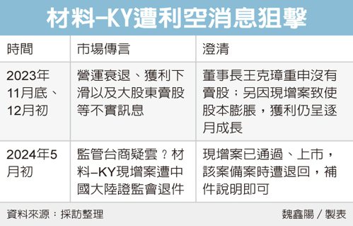 材料-KY去年現增案市場作文章 股價連二黑...董座王克璋無奈