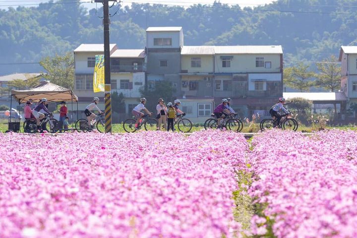 ▲騎自行車探索花海是最棒的方式。 圖:美濃區公所/提供