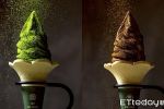 ▲焙茶霜淇淋(右)爲全新口味,推薦搭配巧克力餅皮。