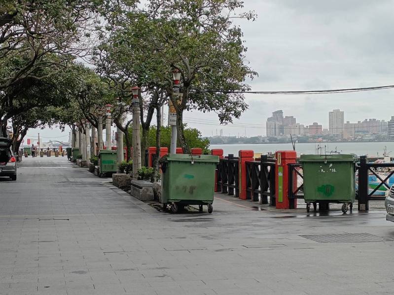 淡水金色水岸與八里左岸每逢假日吸引不少國內外旅客造訪,欣賞美麗海景、夕陽,不過國民黨新北市議員陳家琪指出,民衆對這裡的印象除了美景,還有一個個超大垃圾子母車,缺乏綠美化與景觀規畫,「民衆到底來看美景還是丟垃圾?」水利局長宋德仁承諾2周內檢討改善。