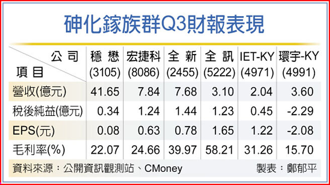 砷化鎵族羣Q3財報表現