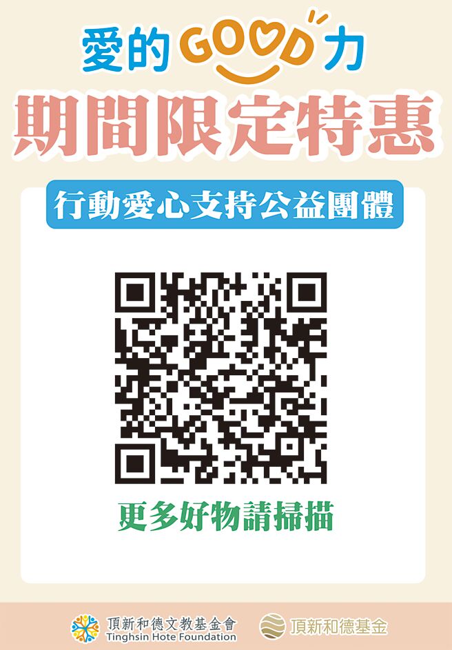 頂新和德文教基金會表示,目前平臺上有近67種愛心商品提供民衆選擇,預計到年底會達到上百種品項,並陸續上架更多商品,請民衆到「愛的GOOD力」好物網路商店,購買公益團體的優質商品。