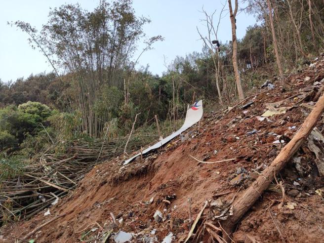 東航MU5735墜機,飛機殘骸散落一地。(圖/中新社)