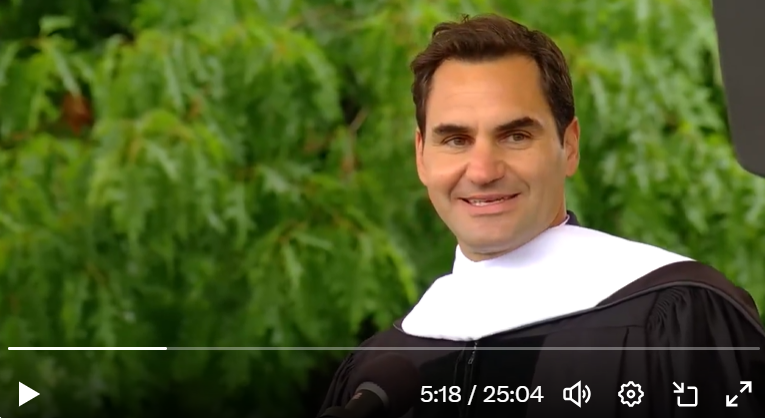 Roger Federer’s Commencement Address at Dartmouth yesterday might be the best speech he’s ever given.Amazingly articulate, funny, full of wisdom. Made me laugh and tear up. I’m so very proud to have had him as my idol for the past two decades.If you have 25 minutes to spare… pic.twitter.com/qfd9io9kzV