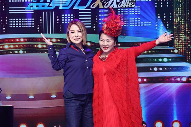 白冰冰(右)、葉璦菱出席「2023真愛秀‧藍寶石大歌廳」 記者會。(羅永銘攝)