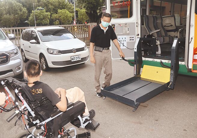 鄭英傑曾被派往支援高雄啓智學校的校車車隊,因爲看到不少特教生需要幫助,激起了他的愛心,決定轉換跑道當特教生的雙腳。(高市教育局提供/楊舒婷高雄傳真)