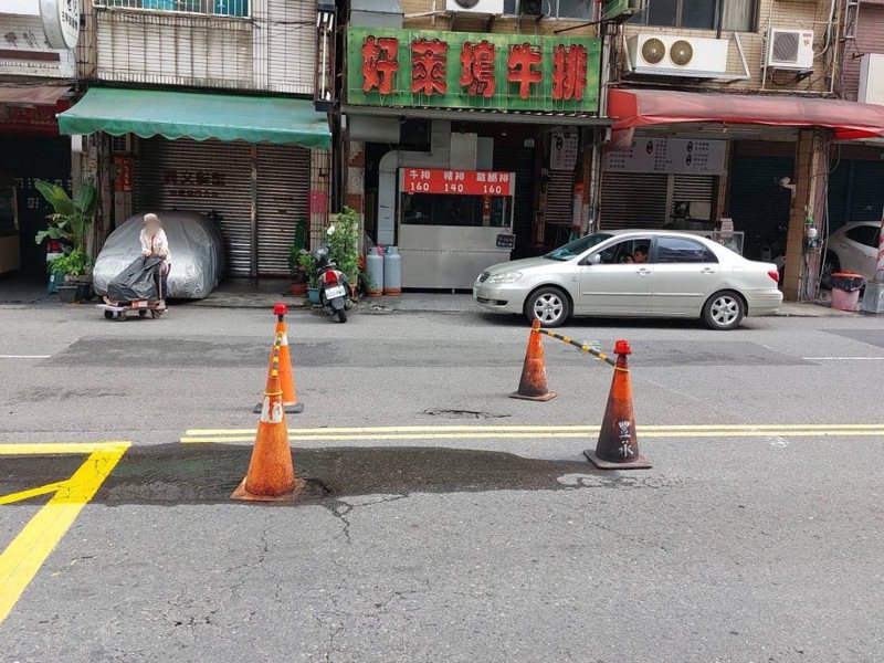 高雄前鎮瑞隆路冒出2坑洞 包商僅放三角錐害騎士慘摔