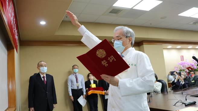 「骨肉瘤權威」陳威明今天宣誓就職臺北榮總院長,盼帶領全院同仁一起守住「防疫下半場」。(臺北榮總提供)
