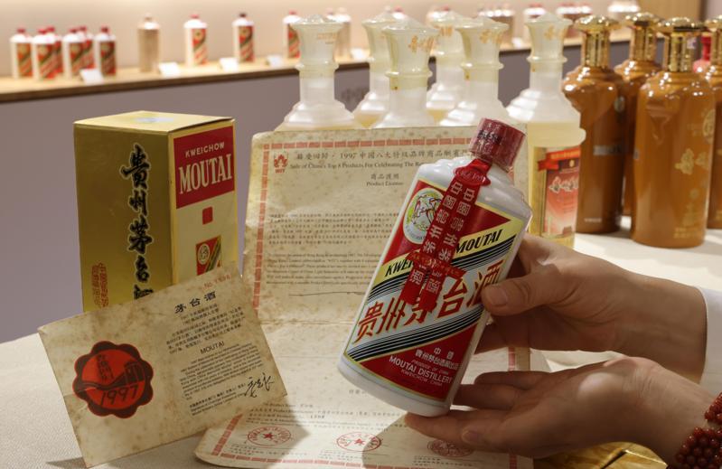 茅臺在中國具有非常強的金融屬性。圖爲5月22日中國嘉德2024春季拍賣會上,一瓶1997年產香港迴歸紀念茅臺酒以人民幣11.5萬元成交。中新社