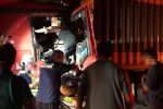 消防人員到場發現砂石車車頭部分嚴重毀損變形,駕駛人受困在車體下方,另1名57歲男子意識清楚,可自行行走,頭部撕裂傷,以救護車送麻豆新樓醫院救治。到清晨5時38分許,消防人員調重機具到場,協助將肇事車輛吊起移開,6時16分將受困人員擡出,已明顯死亡。