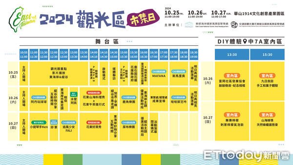 ▲10月25日至10月27日臺北華山文創園區盛活動行程表。(圖/東管處提供,下同)