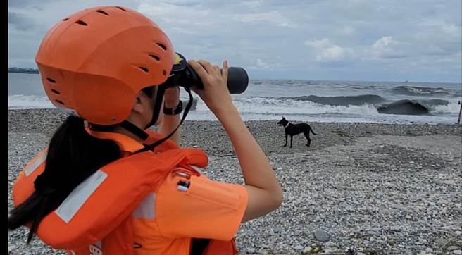 花蓮吉安鄉阿美族文化村出海口今天下午驚傳有男子落海溺水,岸巡人員目前持續使用望遠鏡搜尋,並派遣船艇、空拍機在海上找尋,消防局則協請直升機空偵,盼能儘快找到男子下落。(民衆提供/羅亦晽花蓮傳真)
