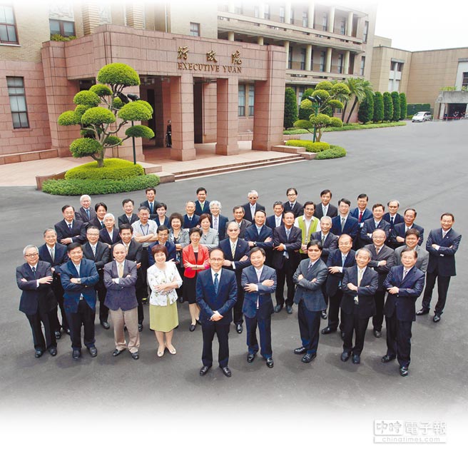 行政院長林全認爲,現行旋轉門條款嚴重影響公職人員卸任後生涯規畫。銓敘部上週提報《公務員服務法》修正案,大幅放寬旋轉門,未來只要是受政府指派,都可以擔任公股事業及財團法人董監事。圖爲林全與閣員在首次院會時合影。(行政院提供)
