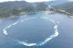 基隆和平島10日舉行一年一度王船海上游江,王船率領漁船遊港遶境,祈求漁民海上作業平安、漁獲滿載而歸。(陳彩玲攝)