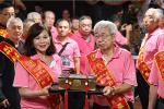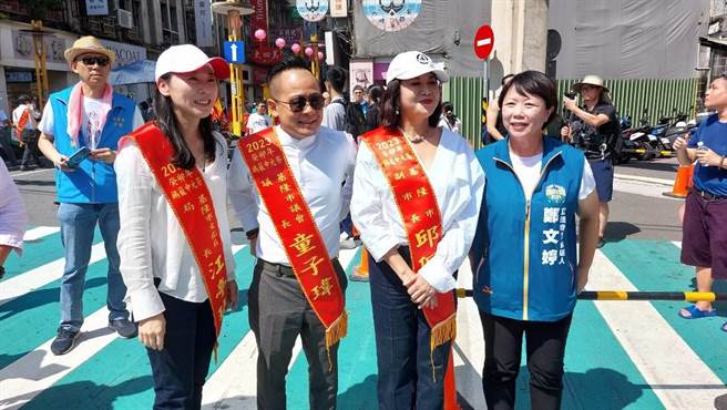 基隆市副市長邱佩琳(右2)、基隆市議會議長童子瑋(左2)與文化局長江亭玫(左1)共同在遊行起點與各宗親會致意。(基隆市政府提供/張志康基隆傳真)