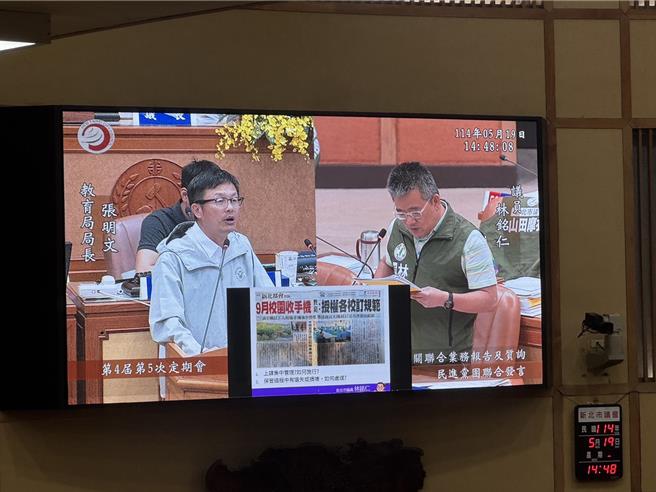 教育部預告修正條例,未來進入校園手機採集中管理,但執行方式交由各校訂定。新北市議員林銘仁在新北市議會質詢提到此事,建議既然教育部有這個方向,教育局是否擬定更詳細的規範原則讓各校遵循。(柯毓庭攝)