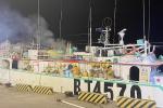 走私漁船被押回基隆港,防疫人員不敢大疫進行消毒作業。(許家寧翻攝)