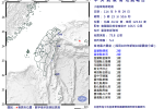 ● 臺東縣地區最大震度4級4級:綠島3級:臺東市、太麻里、東河、大武、達仁、蘭嶼2級:卑南、池上、海端、長濱、鹿野1級:利稻