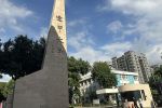 ▲樹德科技大學門口淹水,警方到場拉起封鎖線。(圖/記者許宥孺攝)