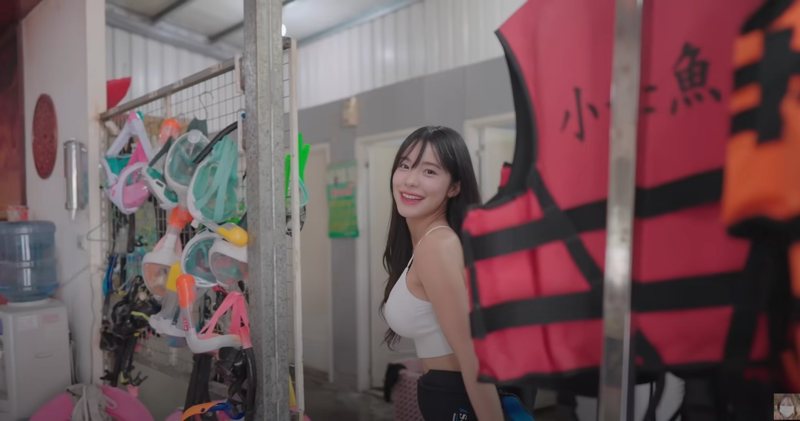 李多慧分享到小琉球浮淺看海龜,換穿潛水服,穿著白色細肩帶被背心在鏡頭前淋浴溼身,可愛又性感。而李多慧在當地租機車,潛水前她穿着背心滿臉開心,到活動完冷到表情猙獰,模樣大不同也讓網友直呼好可愛。