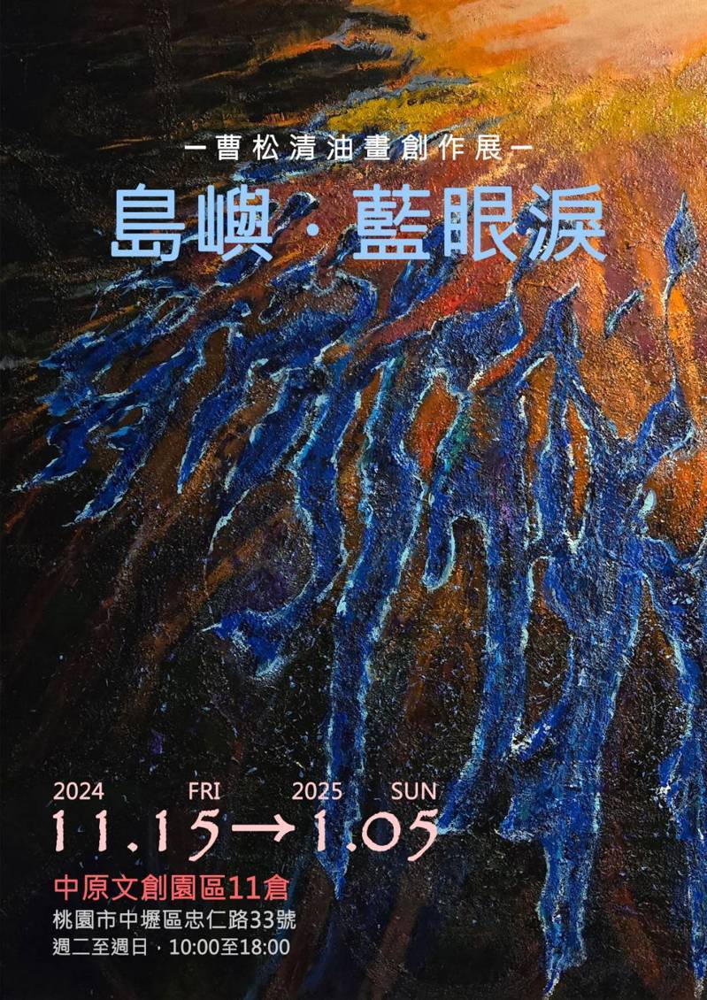 馬祖的「藍眼淚」被美國CNN納入「世界15大自然奇景」,號稱「桃園版華山」的中原文創園區今起至明年1月5日止,於11倉辦理藝術家曹鬆清的創作個展「島嶼‧藍眼淚」,共展出32幅油畫作品,以馬祖奇觀「藍眼淚」爲主軸,彙集多幅不同視角的系列作品,除了於展區內設計AR及互動裝置的體驗外,同時也表現馬祖豐富的海岸與建築,從畫作中勾勒出衆人對馬祖的初步印象。