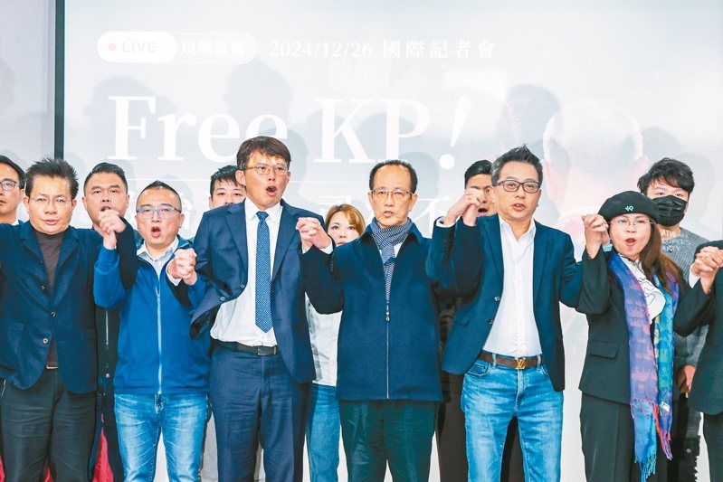 民衆黨昨舉行國際記者會表達堅信黨主席柯文哲無罪,呼籲放人,民衆黨全體手牽手擺出團結姿態,爲柯加油。記者曾原信/攝影